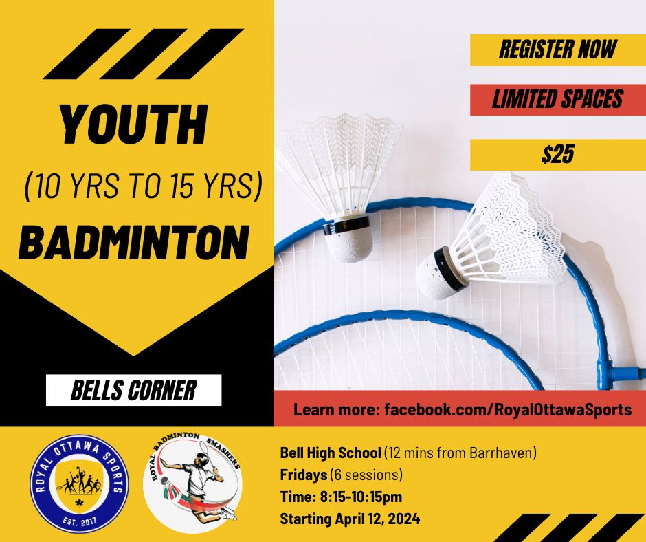 Royal Ottawa Sports is excited to launch a pilot program for youth in our community with indoor badminton! With this pilot program we will gauge interest for this age group (10 yrs-15 yrs) for possible further expansion.